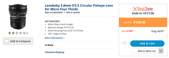 Today only you save $140 on the Lensbaby 5.8mm f/3.5 Circular Fisheye Lens for Micro Four Thirds sold by BHphoto.
