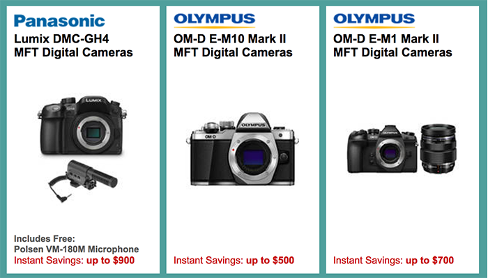 Up to $900 off on GH4 bundle and up to $700 off on E-M1II bundle