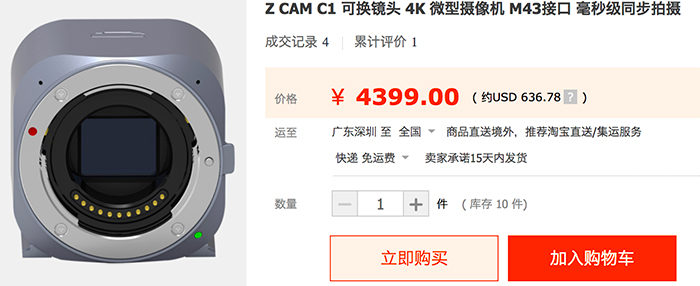 The new Z Cam C1 Micro Four Thirds camera is now on sale at Taobab. It will be losted soon on Adorama too.